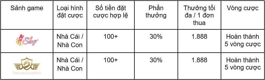 Trong thời gian diễn ra sự kiện, khi bạn đặt cược tại các sảnh Baccarat (CASINO DG – CASINO SEXY),
