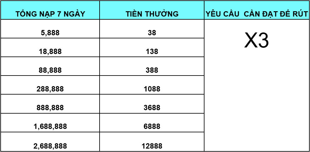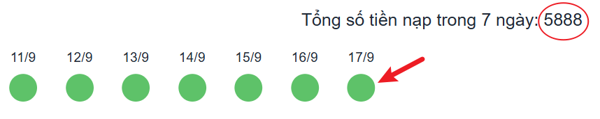 - Tổng nạp tích lũy trong 7 ngày phải lớn hơn 5888